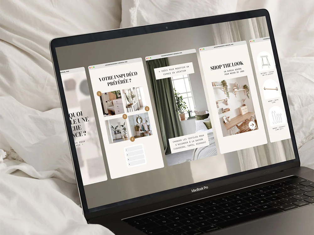 C’est exactement l’idée de l’accompagnement mensuel Bestie on call. Tu me transmets des éléments bruts (idées, photos, vidéos…) et je me charge de le transformer en posts visuellement impactants. Tu gagnes du temps, de la cohérence et une identité forte sur la durée.